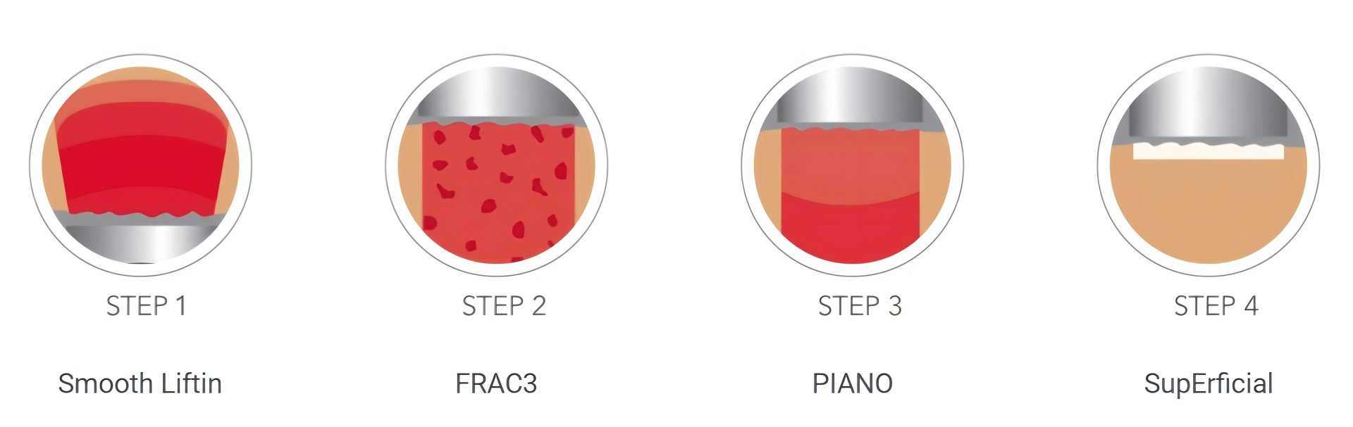 You can flexibly combine them according to your needs; you don't need to do all of them. To improve fine lines around the eyes, use the PS03 controller in Smooth mode; for whitening, use Frac3 mode; and to improve a double chin, use Piano mode. It is recommended to use 2-3 modes as directed by your doctor for a more comprehensive and lasting anti-aging effect.